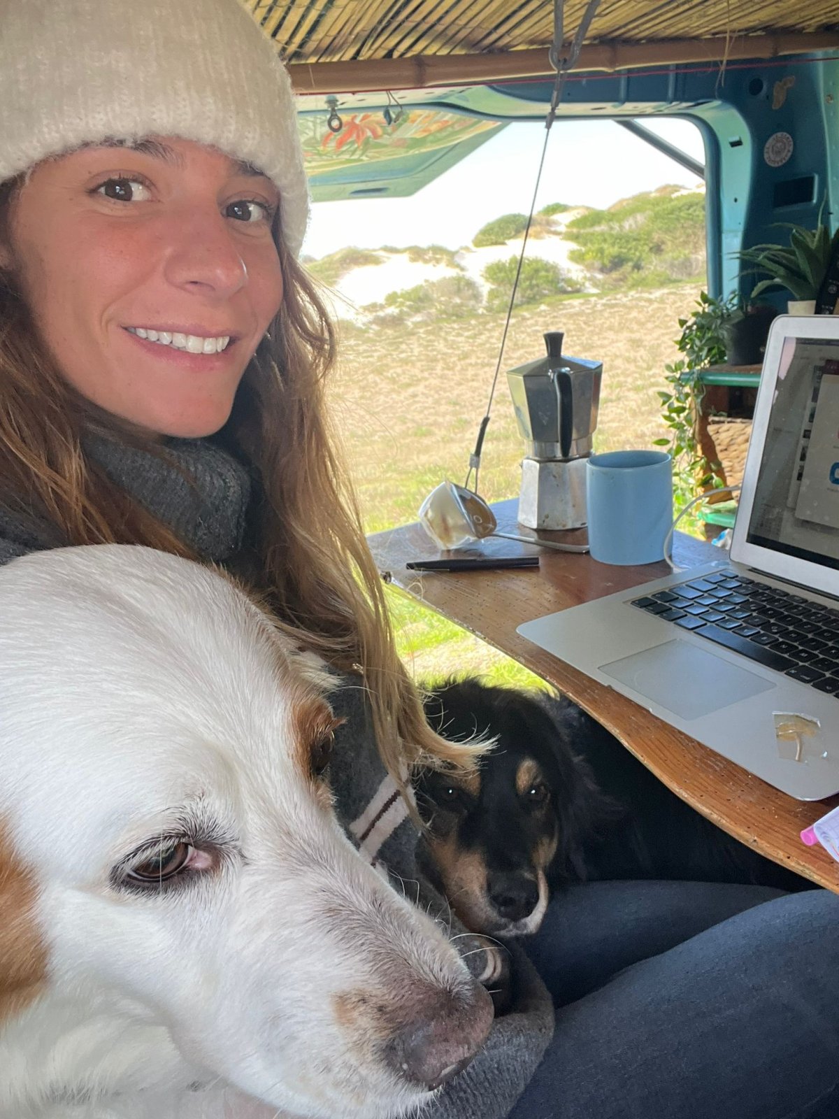 Pendant les leçons en ligne, mes deux chiennes, Polka et Laïla, apparaissent parfois à l’écran pour créer une atmosphère détendue et joyeuse. Elles adorent se montrer curieuses et se glisser à l’image, ce qui fait sourire les élèves et rend les séances plus conviviales. Même derrière l’écran, les étudiants apprécient ces moments légers, qui rendent l’apprentissage plus agréable.